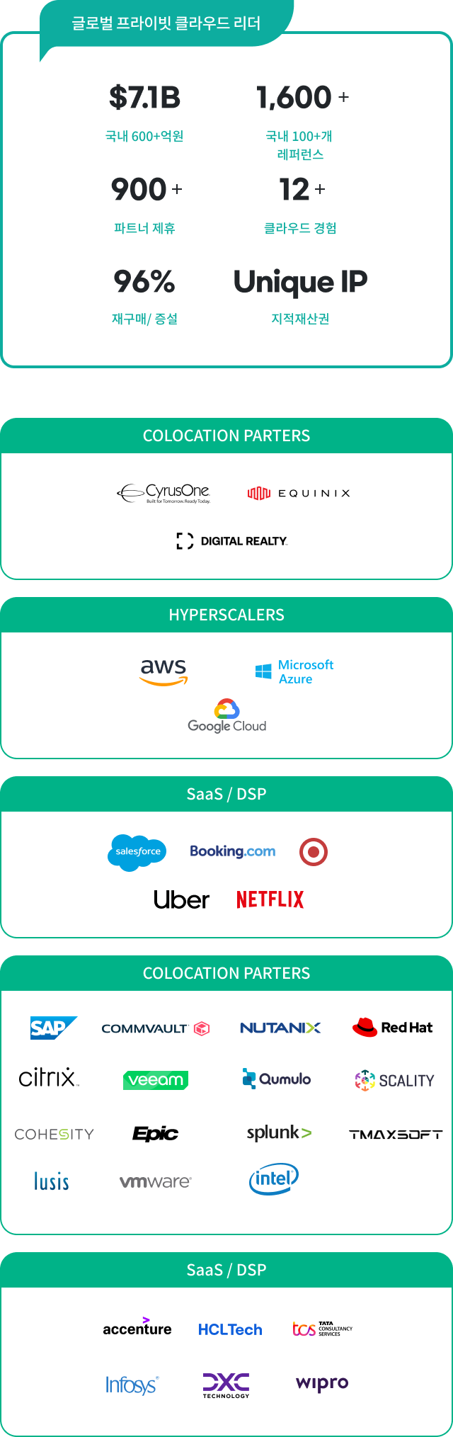 글로벌 고객사례를 바탕으로 모든 산업 및 워크로드에 맞는 다양한 형태의 프라이빗 클라우드 서비스를 제공합니다.