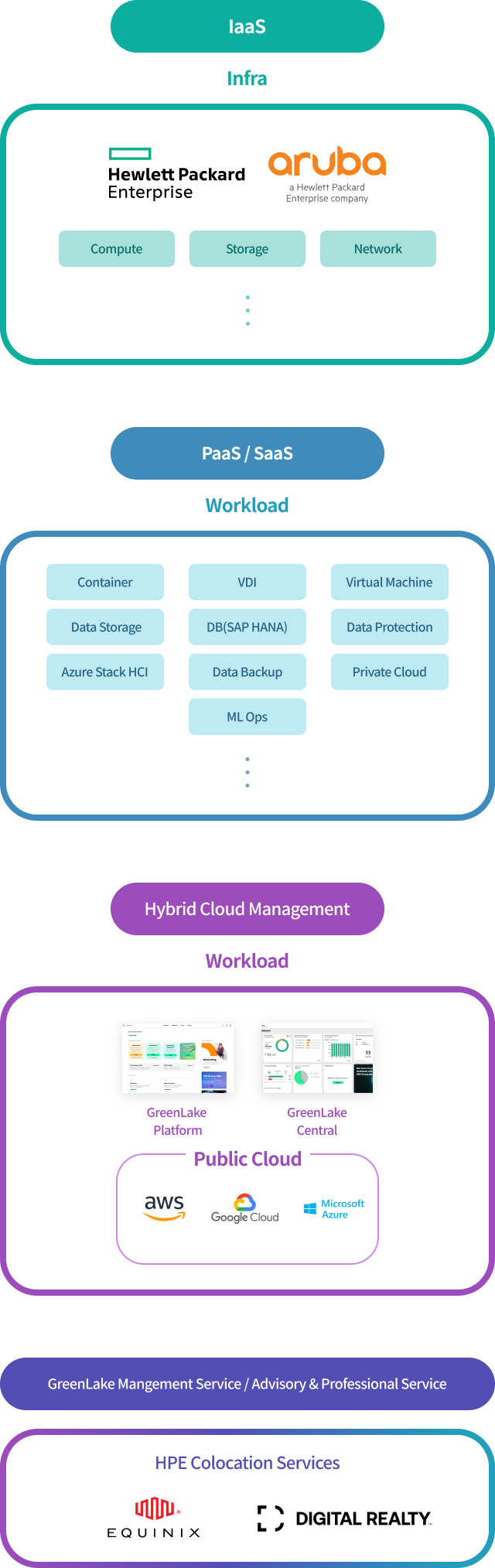 HPE GreenLake는 고객께 제공하는 솔루션의 HW, SW 및 서비스