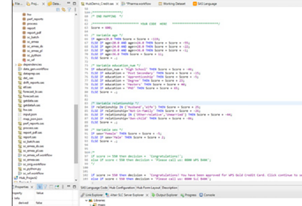 SAS로 작성된 모델 및 프로그램 개발에 이상적인 코딩 환경입니다. SAS 프로그램에 Python, R 및 SQL 프로그램을 실행하기 위해 타사 소프트웨어가 필요하지 않습니다. 또한 이 플랫폼은 드래그 앤 드롭 워크플로우를 제공하며 사용자는 코드를 작성하지 않고도 모델과 프로그램을 개발할 수 있습니다.